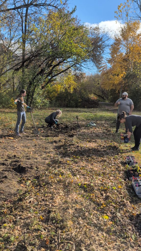 - Site Preparation: Students and volunteers prepare the planting site—amending soil, installing temporary fencing, and laying mulch pathways.